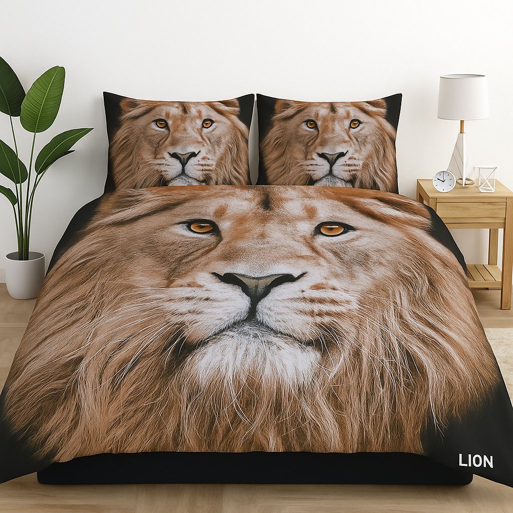3D Lion Print Duvet Set Cover & Pillow Cases